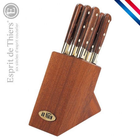 Ce bloc incliné et ses 6 couteaux à steak saura se rendre pratique et décoratif dans une cuisine. Une bonne idée de cadeau !