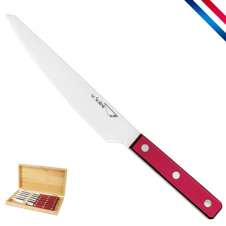 Le Scalène est une création Au Nain. Ce couteau haut de gamme possède une lame avec double micro denture sur la partie supérieure et affûtage rasoir sur la partie inférieure.