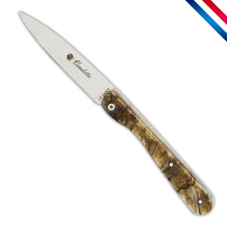 Ce couteau, symbole de la Corse, a été produit à Thiers dans la seconde moitié du 19e siècle. On le retrouve en Corse et sur le continent.