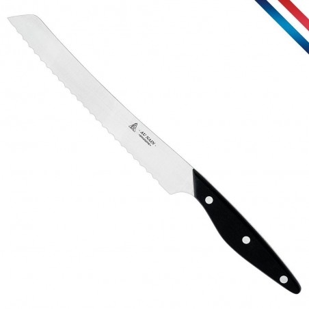 Ce couteau à lame longue, étroite, rigide et à dents permet de trancher tout type de pain, brioche ou pâtisserie. Il permet également de couper ou d'enlever la peau épaisse de certains gros légumes ou fruits comme l'ananas.