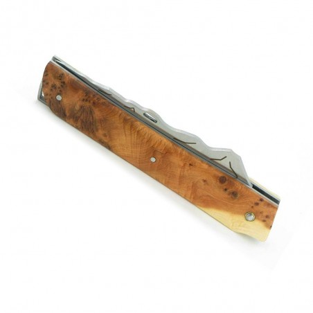 La lame de ce couteau de poche représente la Chaîne des Puys et le Puy-de-Dôme, symbôle local par excellence et lieu sacré depuis les gaulois et les romains. Autrefois lieu de culte au 1er siècle avec les Romains et le dieu Mercure, il est aujourd'hui classé label Grand Site de France.