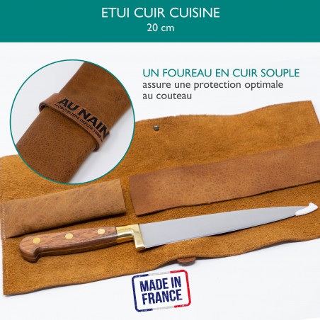 Couteau Prince Gastronome et son très bel étui en cuir. Votre couteau peut être transporté dans n'importe quelle cuisine !