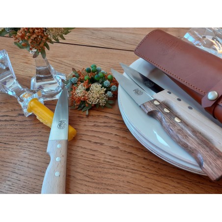 Pour les connaisseurs, leur nom est couteaux de saigner. Le manche tout en rondeur assure une bonne prise en main et la lame avec le marquage en creux leur donne un petit air "vintage" et pourtant très actuel !