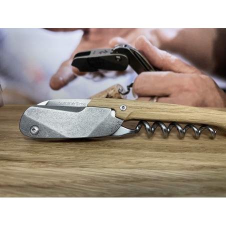 Hommage à Serge Gainsbourg et à son album Initial BB, avec ce somptueux sommelier SummerTime® « Initial » en finition brute (dite stonewashed) et cotes en chêne. Tenue en main exceptionnelle, effet de levier parfait, mèche tire-bouchon conique avec cinq spires. Objet cadeau à offrir – et à s’offrir – « Initial » joue de contraste entre l’acier et le bois.
