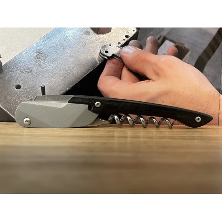 Hommage au jazzman Chet Baker, avec ce très beau sommelier SummerTime® en finition sablé pour le crapaud et bois d’ébène pour les cotes. Tenue en main exceptionnelle, effet de levier parfait, mèche tire-bouchon conique 5 spires. Objet cadeau à offrir – et à s’offrir – « Chet » joue l’harmonie parfaite de ses beaux reflets gris, acier et noir.